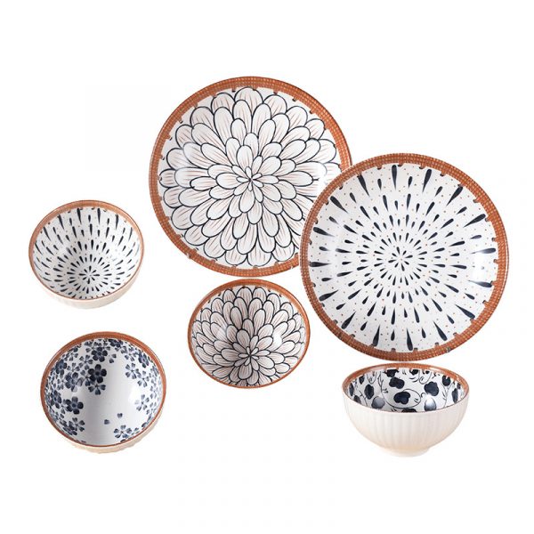Indulge in the enchanting beauty of wood grain patterns, meticulously printed on each piece of our top-quality ceramic tableware. Crafted with utmost precision and attention to detail, this set adds a touch of elegance and sophistication to any dining experience.