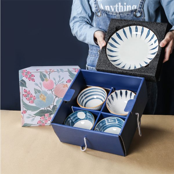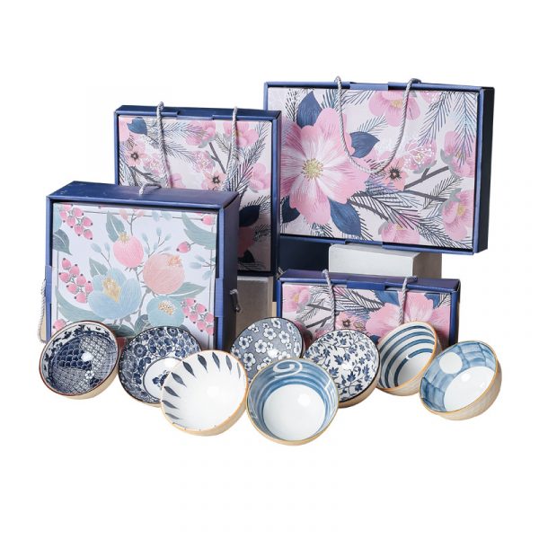 Japanese Blue and White Porcelain Bowl Ceramic Tableware Set Chopsticks Gift Box Set for Opening Ceremony, Customizable with Logo.